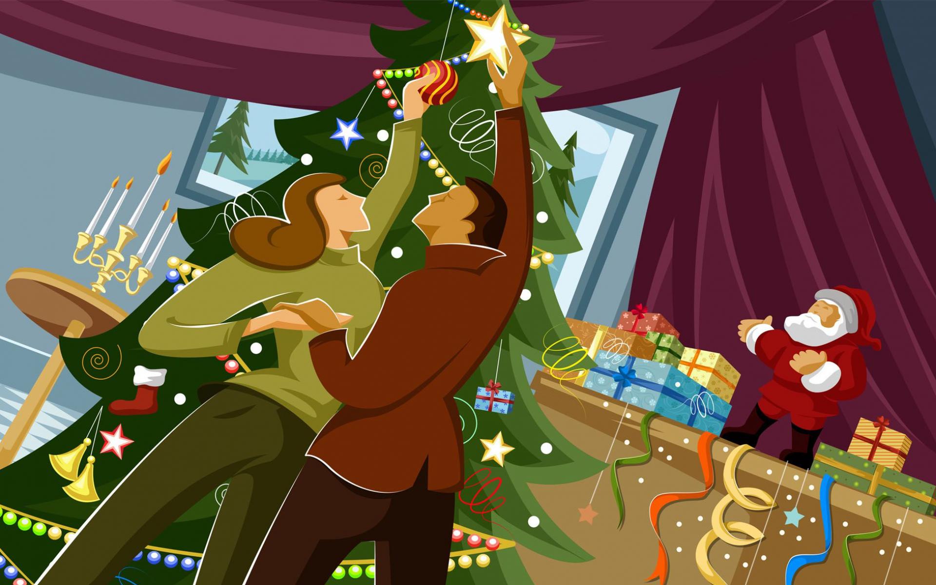 Семья наряжает елку обои для рабочего стола, картинки, фото, 1920x1200. | ||||||||||||||||