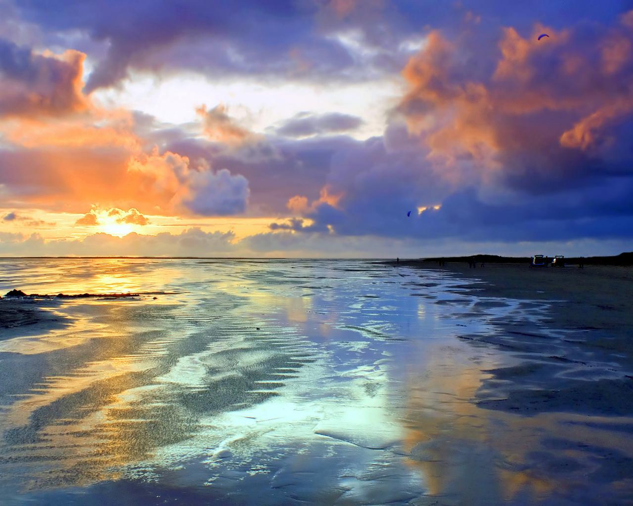 Природа, пейзаж, побережье, песок, вечер, закат, небо, цвета, фон обои для рабочего стола, картинки, фото, 1280x1024. | ||||||||||||||||||||||