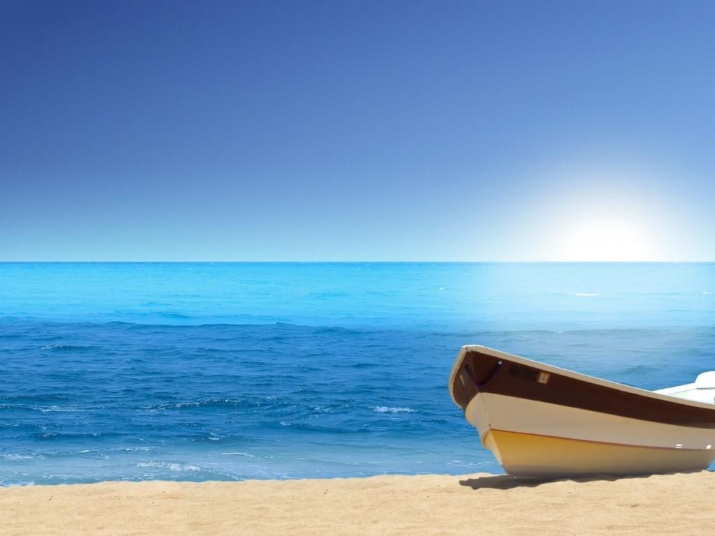 Море, океан, лодка, пляж, лето, отдых, штиль обои для рабочего стола, картинки, фото, 1024x768. | ||||||||||||||||||||||