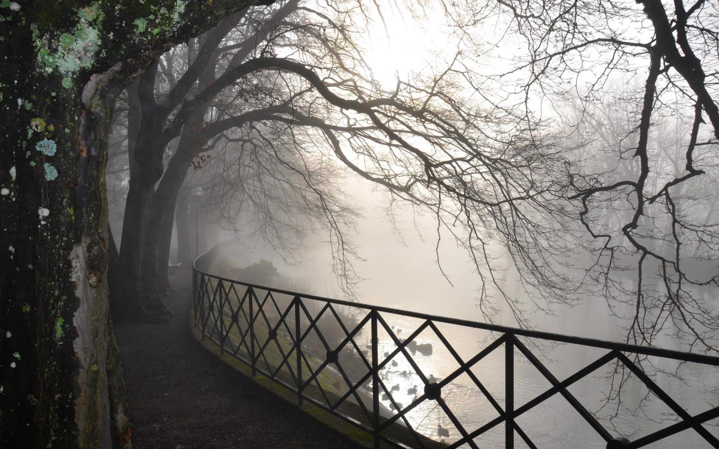 Деревья, ветви, туман, река, дорога, лес, природа обои для рабочего стола, картинки, фото, 1440x900. | ||||||||||||||||||||||